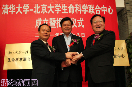 清華大學校長顧秉林、北京大學校長周其鳳、教育部副部長杜占元為中心揭牌。 儀式上,教育部科技司司長王延覺宣讀了“教育部關于批準成立清華大學—北京大學生命科學聯(lián)合中心的通知”,財政部、科技部、教育部及清華大學、北京大學相關部門負責人應邀出席。 |