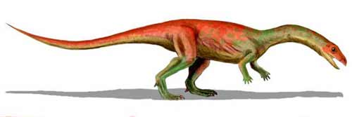 圖為波波龍復(fù)原圖 波波龍(屬名:Poposaurus)是距今2億多年前三疊紀(jì)(triassic period)晚期生活在美國地區(qū)的一類早期爬行動物,屬于勞氏鱷(rauisuchian,一種史前爬行類動物,最終演化成鱷魚)中的第三類。 化石的時代可追溯到距今2.25億年前。骨骼從頸部到尾部都完整保存下來,根據(jù)其獨特的骨骼結(jié)構(gòu)——四肢骨(并不是類似今天的鱷魚一樣位于身體的兩側(cè)),科學(xué)家推測該種波波龍應(yīng)該為直立行走。 波波龍模式種為纖細(xì)波波龍(P. gracilis),全長約14英尺(約4.27米),由古生物學(xué)家M. G. Mehl在1915年描述。 而此次美國紐約自然歷史博物館(American Museum of Natural History in New York City)的S. Nesbitt和耶魯大學(xué)(Yale University)古生物學(xué)家J. Gauthier對這具發(fā)現(xiàn)于2006年的波波龍化石解剖學(xué)特征進(jìn)行了新的厘定。 經(jīng)過研究,研究人員把勞氏鱷劃分到奧氏靈鱷(Effigia okeeffeae)中,是少數(shù)表明鱷魚祖先與恐龍發(fā)生相對獨立演化的證據(jù)之一,同時也表明雙足行動的方法可以使它們在捕獵中獲益,使其能在激烈的生存競爭中存活下來。 |