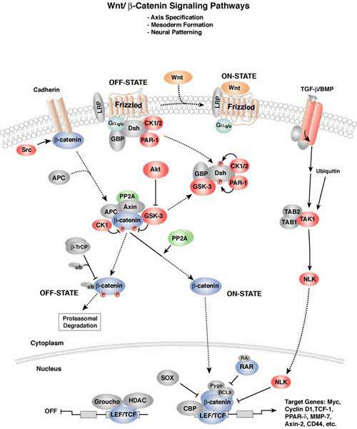 Wnt信號通路 他們通過研究發(fā)現(xiàn),背板基因控制著Wnt信號的生化路線。Wnt路徑存在于所有動物中,控制著多種發(fā)育過程和疾病,包括組織修復(fù)和癌癥。彼得森解釋說,再生動物必須有一套健全穩(wěn)定的指令系統(tǒng),才能再生出正確的組織結(jié)構(gòu)。這需要利用一種指示信號,來指出與傷口相關(guān)的坐標(biāo)方向,才能再生出所需要的部分。背板基因與Wnt路徑相互作用,形成了真渦蟲的再生指令系統(tǒng)。 當(dāng)真渦蟲的頭或尾被切除后,Wnt信號路徑被激活,被激活的路徑只在朝向頭部傷口的位置開啟背板基因,通過一個反饋回路,背板基因反過來使Wnt活性程度進(jìn)一步降低到一定程度直到頭部再生成功;在朝向尾巴的傷口,背板基因的活躍程度,只能促進(jìn)尾部再生。蠕蟲再生出頭或尾需要約一周時間。 研究人員指出,背板基因和Wnt信號路徑在進(jìn)化過程中都非常古老,且背板基因在從海葵到果蠅甚至人類等生物中廣泛存在,只是其作用很少有人知道。真渦蟲中背板基因與Wnt信號路徑相互作用的現(xiàn)象可能在其他生物中也廣泛存在,Wnt信號路徑在組織修復(fù)過程中的作用已被廣泛研究,而背板基因可能發(fā)揮著核心作用。 |