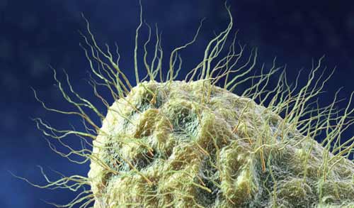 這張電腦合成圖顯示的是一個(gè)典型的纖毛桿狀菌的末端。典型桿狀菌包括大腸桿菌和沙門氏菌。