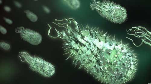這是電腦合成圖,它顯示的是正在利用3個(gè)尾狀物在人體消化道里游來游去的管狀腸埃希氏菌。