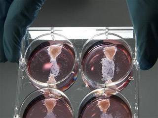 荷蘭生物學家馬克·波斯特(Mark Post)在實驗室培養(yǎng)的人造肉類應征了英國前首相丘吉爾曾預言,未來人類根本不用養(yǎng)雞,因為可以“種”出雞翅來。只不過馬克“種”出的不是雞而是牛排。讓我們來看看馬克究竟是怎樣在培養(yǎng)皿中“種”出一小塊牛排的吧! 人造牛排是怎樣“種”成的? 人造的肉類并非真正產(chǎn)自動物的身體,但不同于模仿肉類的豆制品,它確實是貨真價實的肉。馬克利用干細胞離體培養(yǎng)技術(shù)來“制造”肌肉組織。他將取自動物體內(nèi)的干細胞放入適宜的培養(yǎng)基內(nèi),得到健康生長的薄片狀組織。將約3,000張“肉片”疊在一起,再加上一些實驗室制造的脂肪,就能做出一塊人造肉排。