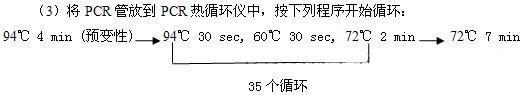 (1)PCR反應(yīng)混合液的配制:反應(yīng)體系25 µL, 在無菌的0.2 mL離心管中按下列操作程序加樣: