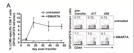 原本衰竭的CD8+T細(xì)胞重新恢復(fù)了活力!慢性感染小鼠體內(nèi)的CD8+T細(xì)胞又開始大量繁殖并發(fā)揮作用。