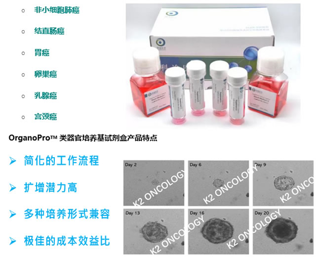 OrganoProTM 類器官培養(yǎng)基試劑盒產品系列是科途醫(yī)學基于 Simumatrix 技術平臺,通過工業(yè)化高通量篩選,針對中國高發(fā)的腫瘤類型進行培養(yǎng)基優(yōu)化篩選而開發(fā)類器官培養(yǎng)基產品。目前可進行商業(yè)化銷售的類器官培養(yǎng)基試劑盒可適用于以下瘤種的類器官培養(yǎng):