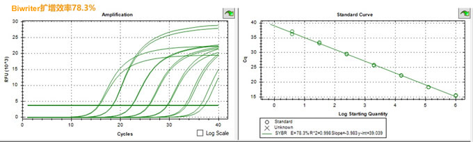 試劑原理: 本產(chǎn)品利用熱啟動(dòng)酶 HS Taq DNA polymerase 進(jìn)行 qPCR 擴(kuò)增反應(yīng),通過(guò)擴(kuò)增產(chǎn)物嵌合SYBR Green I 而激發(fā)的熒光信號(hào)強(qiáng)度進(jìn)行檢測(cè)。