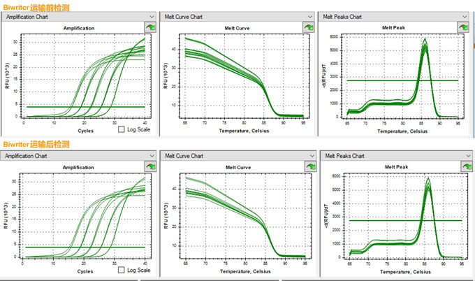 標(biāo)準(zhǔn)GMP生產(chǎn)車(chē)間: SYBR Green PCR Master Mix 生產(chǎn)和測(cè)試: 質(zhì)量評(píng)估指標(biāo): 1、Cq值相比主流品牌差異; 2、NTC有無(wú)非特異性擴(kuò)增; 3、擴(kuò)增效率相比主流品牌差異; 4、模板在低拷貝極限下,特異性擴(kuò)增相比主流品牌差異; 5、平臺(tái)期的熒光值相比主流品牌差異; 6、批次之間擴(kuò)增曲線、溶解曲線重復(fù)性情況; 7、模擬運(yùn)輸環(huán)境測(cè)試,產(chǎn)品性能重復(fù)性情況。