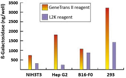 GeneTrans II 轉(zhuǎn)染試劑與領(lǐng)先試劑 L2K 的比較。
