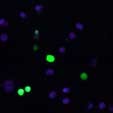 Jurkat,克隆 E6-1 細胞利用 TransIT®-Jurkat 轉(zhuǎn)染試劑盒和 pEGFP (Clontech) 在完全培養(yǎng)基中轉(zhuǎn)染 48 小時(綠色)。固定細胞,然后用To-Pro-3(分子探針)復(fù)染以顯示細胞核(藍色)。