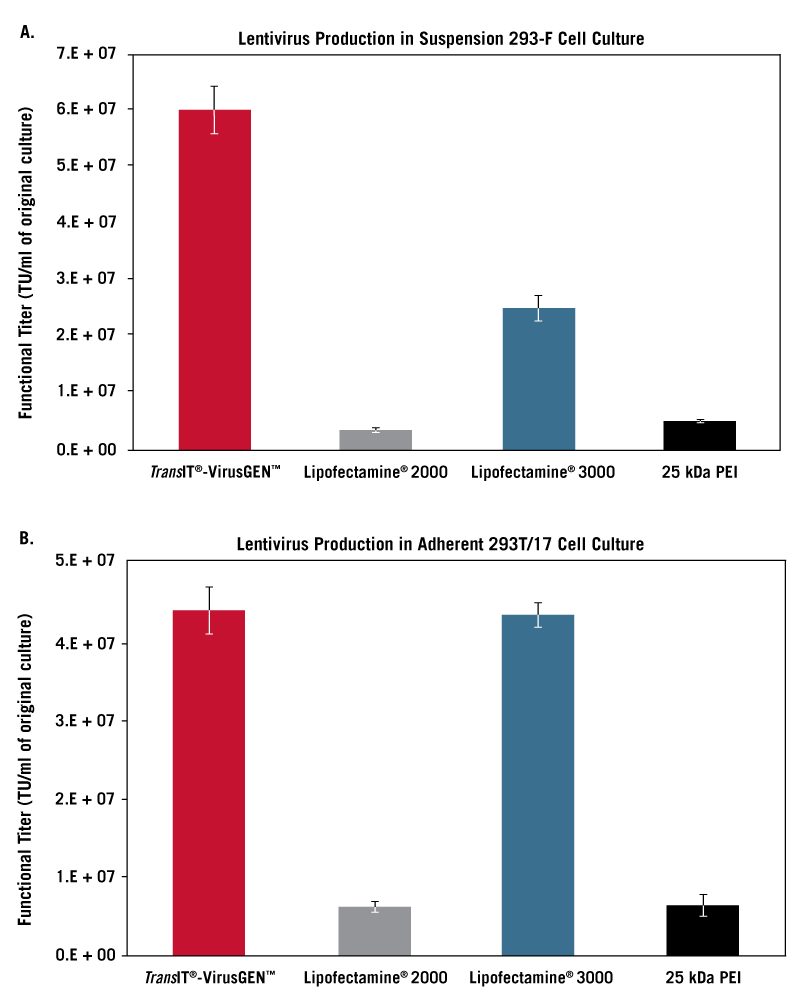 TransIT®-VirusGEN™ 在懸浮和粘附慢病毒細胞培養(yǎng)方面優(yōu)于競爭對手試劑