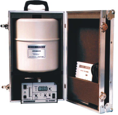 FREEZE CONTROL®中的 CryoBaths 用來保存液氮,有兩種型號: 3.8 升:填滿后可滿足 4 小時工作時間。用戶如果需要 60 Ampoule CryoChamber 需要配此冷凍罐。 Product Code: LNL 1.5 升:填滿可以滿足 2 小時工作時間。(4)攜帶箱(Carry Cases) 水平攜帶箱