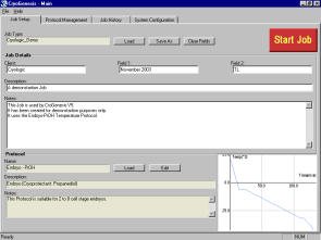 CryoGenesis™ V5 軟件是由 CryoLogic 發(fā)展的用于 FREEZE CONTROL®可編程程序降溫儀 (, CL-8800i, CL-3300)。 它是全新的,簡單的用戶界面和先進的記錄關(guān)系系統(tǒng),還有 USB 數(shù)據(jù)接口。 CryoGenesis V5 特點: 可編制個性化的溫度控制程序 程序的執(zhí)行是收到監(jiān)視和控制的 冷凍操作的信息也被記錄 冷凍操作可快速、簡單起始 可顯示記錄的冷凍室(Cryochamber)中的溫度 可保持所有的過去的冷凍操作歷史。 CG V5 可在 Windows 95, 98, ME, NT, 2000 和 XP 操作系統(tǒng)下運行,同時可執(zhí)行其它程序。 CryoGenesis™ V4 CryoGenesis™ V4